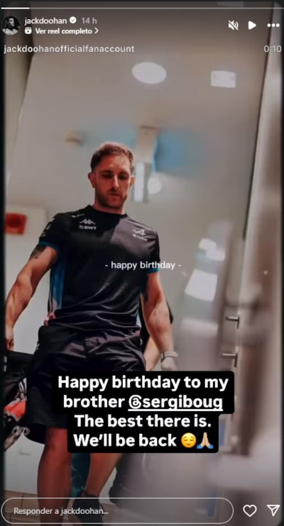 La primera reacción pública de Doohan no fue directa ni explícita respecto a su nuevo rol dentro del equipo francés. En lugar de abordar el tema de manera directa, el joven piloto de 21 años eligió romper el silencio al día siguiente del anuncio a través de una historia en Instagram. En la publicación, Doohan saludó por su cumpleaños a Sergi Bou García, su entrenador personal y preparador físico, quien ha sido una pieza clave en su desarrollo físico y mental.
