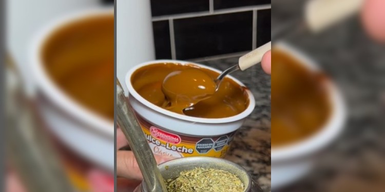 “Dulce de leche, mate, ¿te armo con agua caliente? Y sí, es la mezcla más argentina que vas a ver en tu vida”, dice en el video que ya acumula miles de visualizaciones, compartidos y comentarios cruzados.