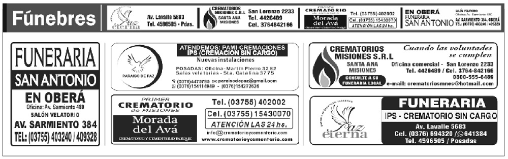 • Fúnebres del Sábado 10 de Mayo de 2025