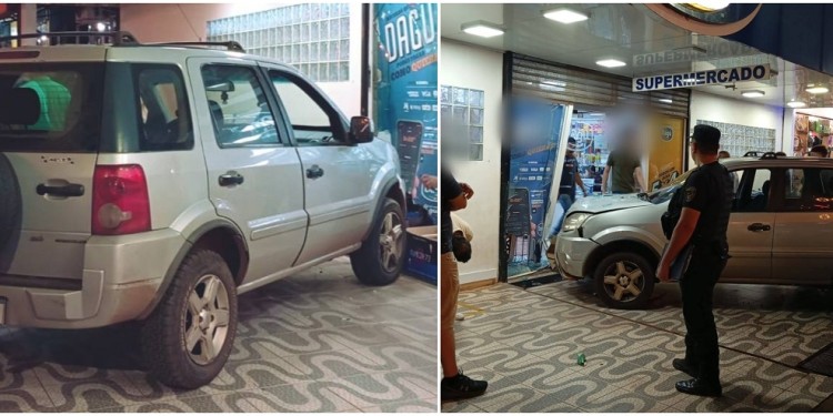 Una camioneta Ford EcoSport, conducida por un ciudadano brasileño, protagonizó un accidente en pleno centro de Iguazú al subirse a la vereda y embestir la entrada de un supermercado, según informó LaVozDeCataratas.