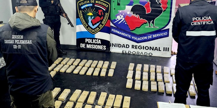 Durante un operativo encubierto realizado en la madrugada de este miércoles en el barrio San José de Eldorado, efectivos de las Divisiones de Drogas Peligrosas de las Unidades Regionales de Eldorado y Puerto Rico secuestraron 84 ladrillos prensados de marihuana listos para su distribución. El procedimiento se llevó a cabo cerca de las 3.15, cuando los efectivos que patrullaban la calle Maipú, próxima al margen sureste del río Paraná, observaron a un hombre que huyó rápidamente al advertir la presencia policial.