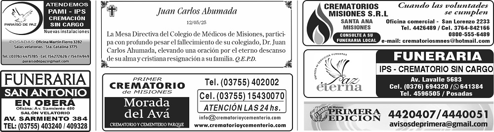 • Fúnebres del Sábado 17 de Mayo de 2025