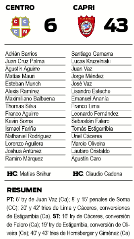 Sobre el cierre del partido, a los 40 y 43, llegaron dos nuevos ensayos, obra de Santiago Horriberger y Giménez para sellar el marcador final en 43-6.