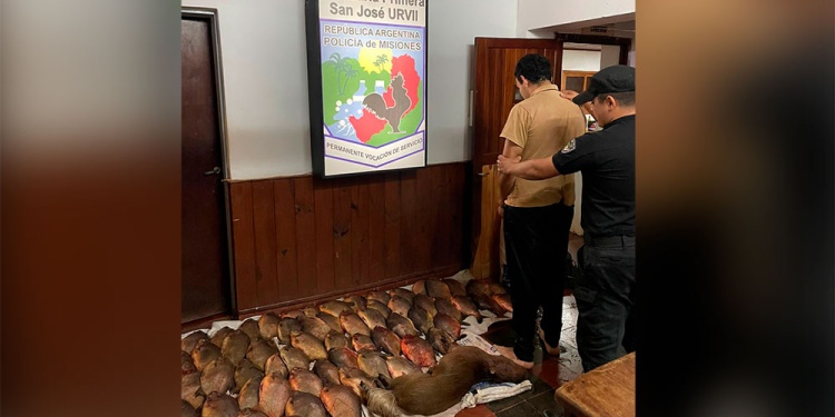 Cuando los policías arribaron al sitio, advirtieron que a través del monte huía un hombre que llevaba a cuestas una mochila. Cuando lo interceptaron, constataron que allí guardaba elementos de pesca y animales extraídos de manera ilegal: 67 pacúes y un carpincho.