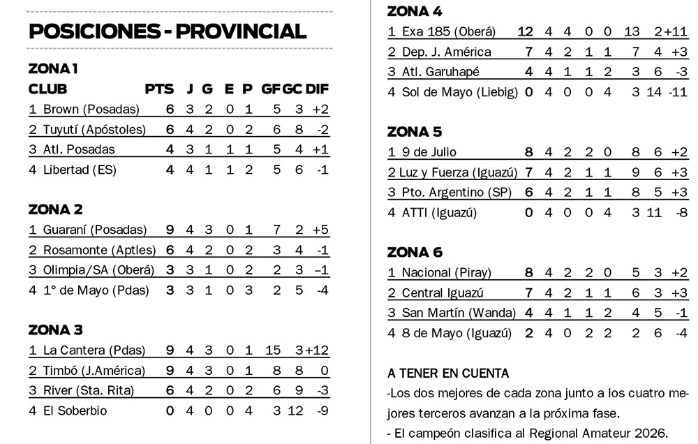 Además, en Iguazú, Luz y Fuerza goleó a ATTI (5-1), mientras que Tuyutí sorprendió a Libertad en El Soberbio (4-3).