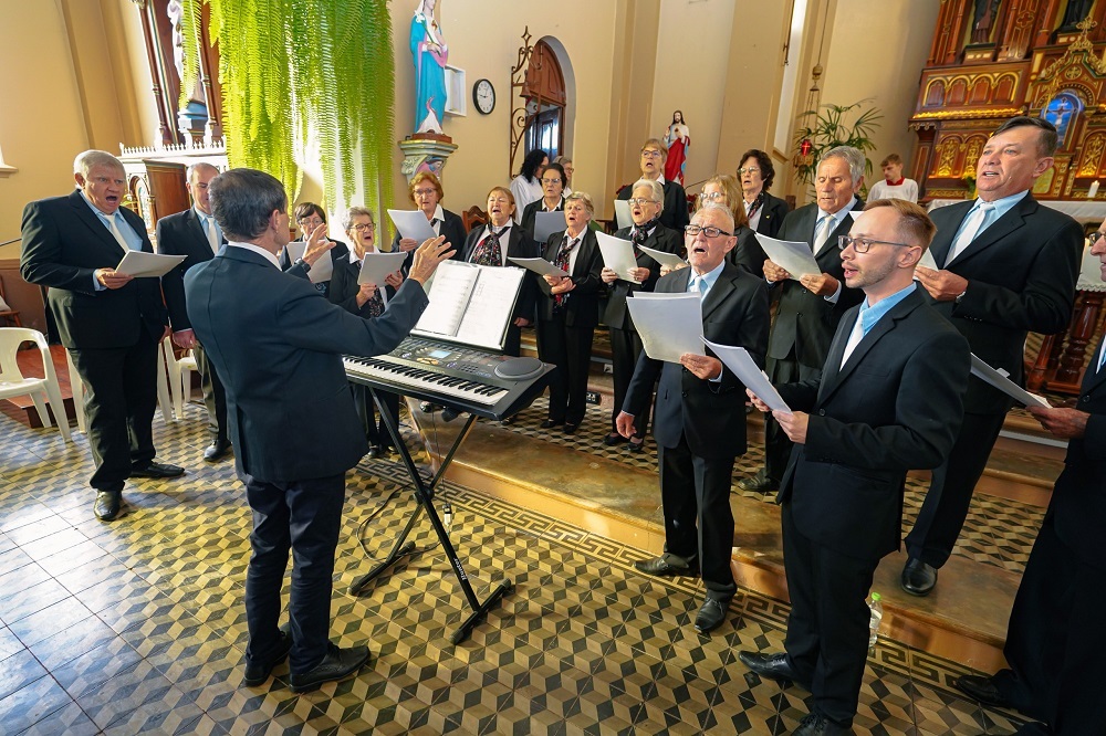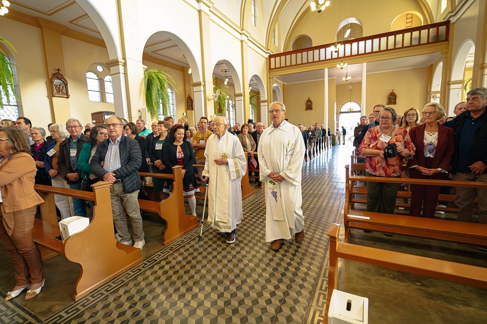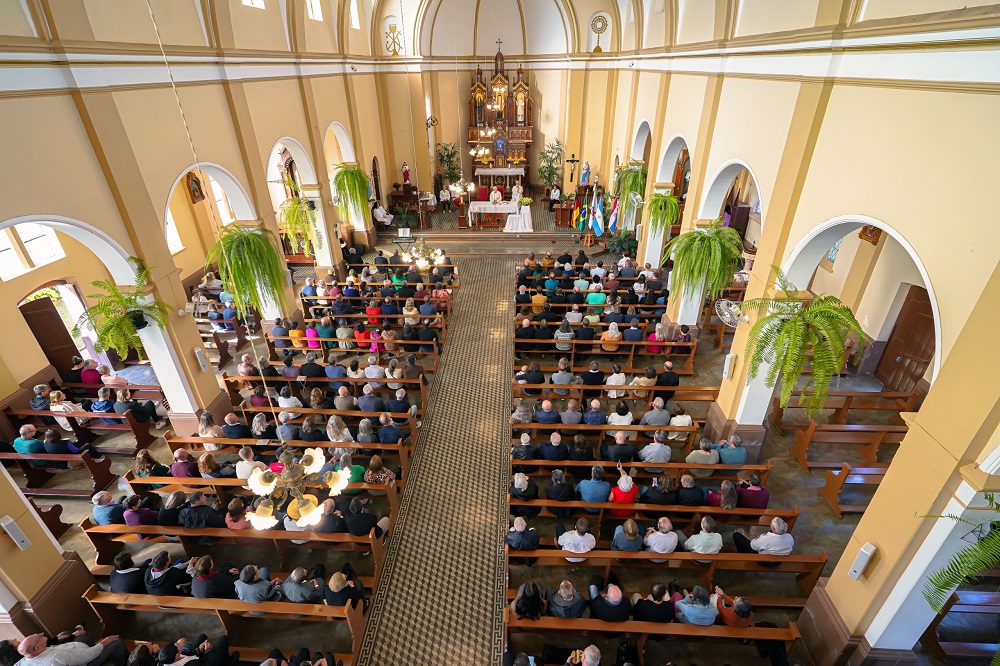 Todos participaron de una santa misa en acción de gracias en la Iglesia Matriz São Francisco Xavier de Santa Clara Do Sul, donde los celebrantes fueron los sacerdotes Cláudio Mallmann y Antônio Puhl. En el templo se presentó el Coral São Francisco, fundado hace más de 100 años por los hermanos inmigrantes Peter e Johann Peter Mallmann.