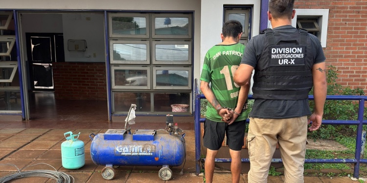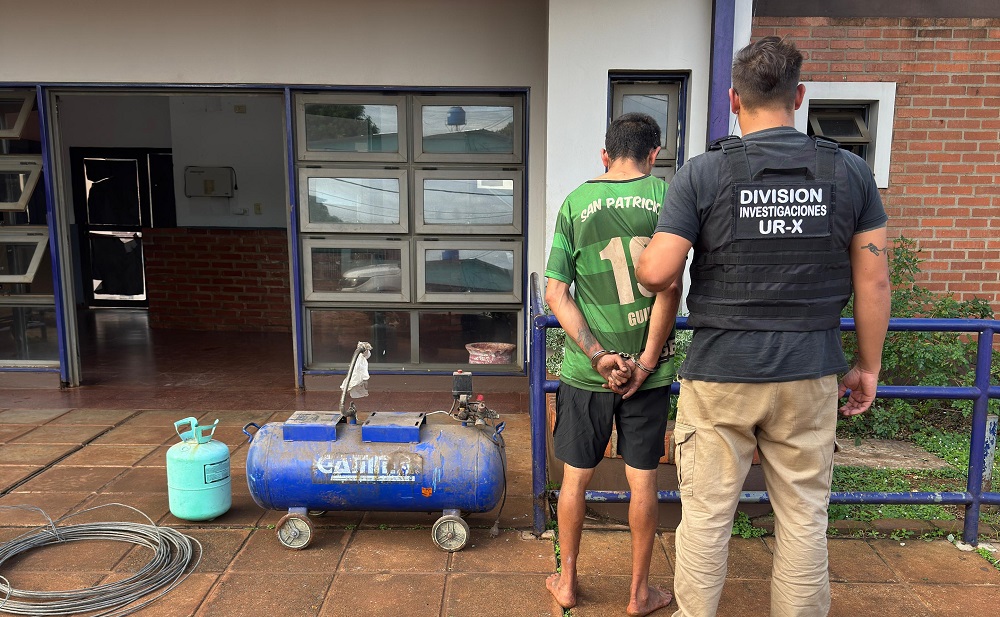 La víctima del ilícito manifestó que el detenido ingresó sin autorización a su vivienda y sustrajo varios elementos de valor, entre ellos un compresor, una garrafa de refrigeración y un rollo de cable de acero, los cuales fueron recuperados.