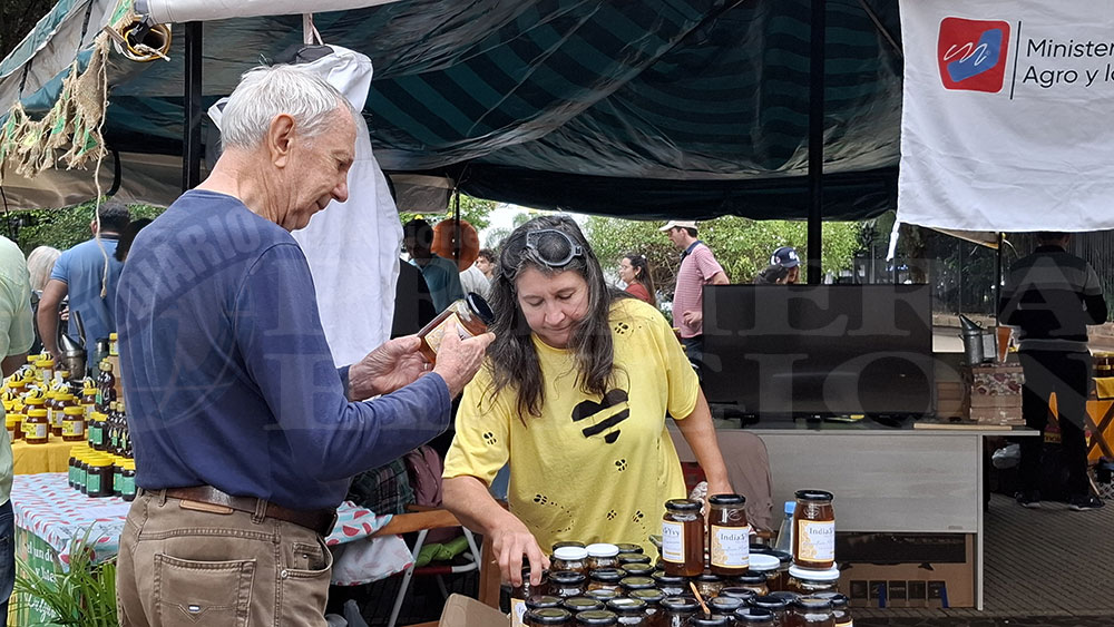 También hay lugar para la miel de yateí, una variedad más medicinal y escasa que se obtiene de abejas nativas sin aguijón. “Tiene propiedades diferentes porque estas abejas pequeñas polinizan flores que las abejas comunes no alcanzan. Se vende un poco más cara porque se produce en menor cantidad, pero cada vez hay más melíponas en Misiones”, explicó Andrea, una productora de Apóstoles.