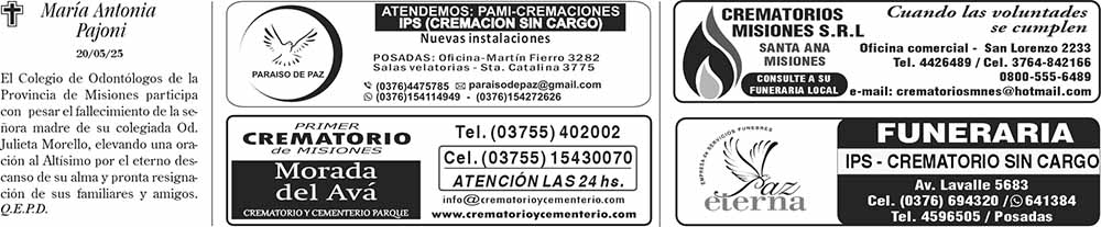 Fúnebres del Miércoles 21 de Mayo de 2025