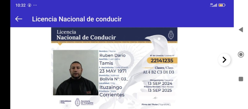 En este sentido, Tamis ejemplificó: “Yo estoy registrado en Posadas, Misiones, tengo la licencia nacional digital y claro que me permite conducir en todo el país y en 133 países. Por supuesto que nadie puede rechazarme”.