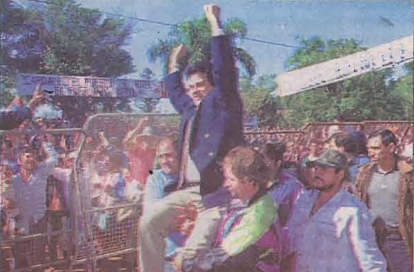 El 23 de mayo de 2000, en medio de un clima caldeado al límite y con una multitud enfervorizada esperándolos afuera, los siete integrantes del Concejo Deliberante de San Vicente votaron por unanimidad la destitución del entonces intendente local Héctor Carballo, acusado de “manifiesta y reiterada inconducta”.