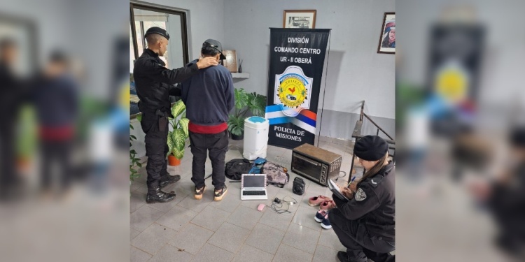Un joven de 20 años con un amplio historial delictivo fue detenido este viernespor efectivos de la División Comando Radioeléctrico de Oberá, luego de ser sorprendido tras una seguidilla de robos en un albergue estudiantil y sus inmediaciones. La rápida intervención policial permitió recuperar la totalidad de los objetos sustraídos y poner al implicado a disposición de la Justicia.