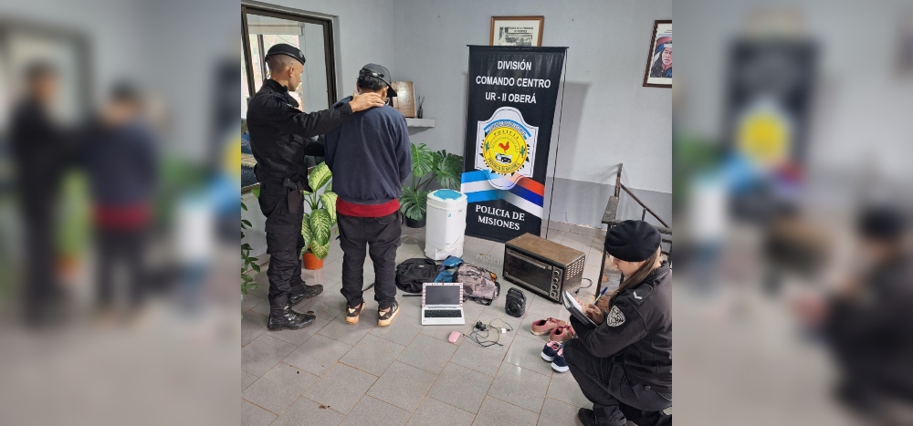 Un joven de 20 años con un amplio historial delictivo fue detenido este viernespor efectivos de la División Comando Radioeléctrico de Oberá, luego de ser sorprendido tras una seguidilla de robos en un albergue estudiantil y sus inmediaciones. La rápida intervención policial permitió recuperar la totalidad de los objetos sustraídos y poner al implicado a disposición de la Justicia.