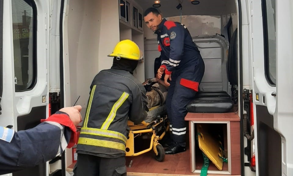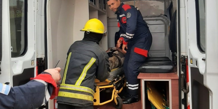 En forma inmediata, el lesionado fue asistido por personal de Bomberos Voluntarios, quienes utilizando una hidroescalera lo bajaron y posteriormente fue trasladado a un nosocomio local.