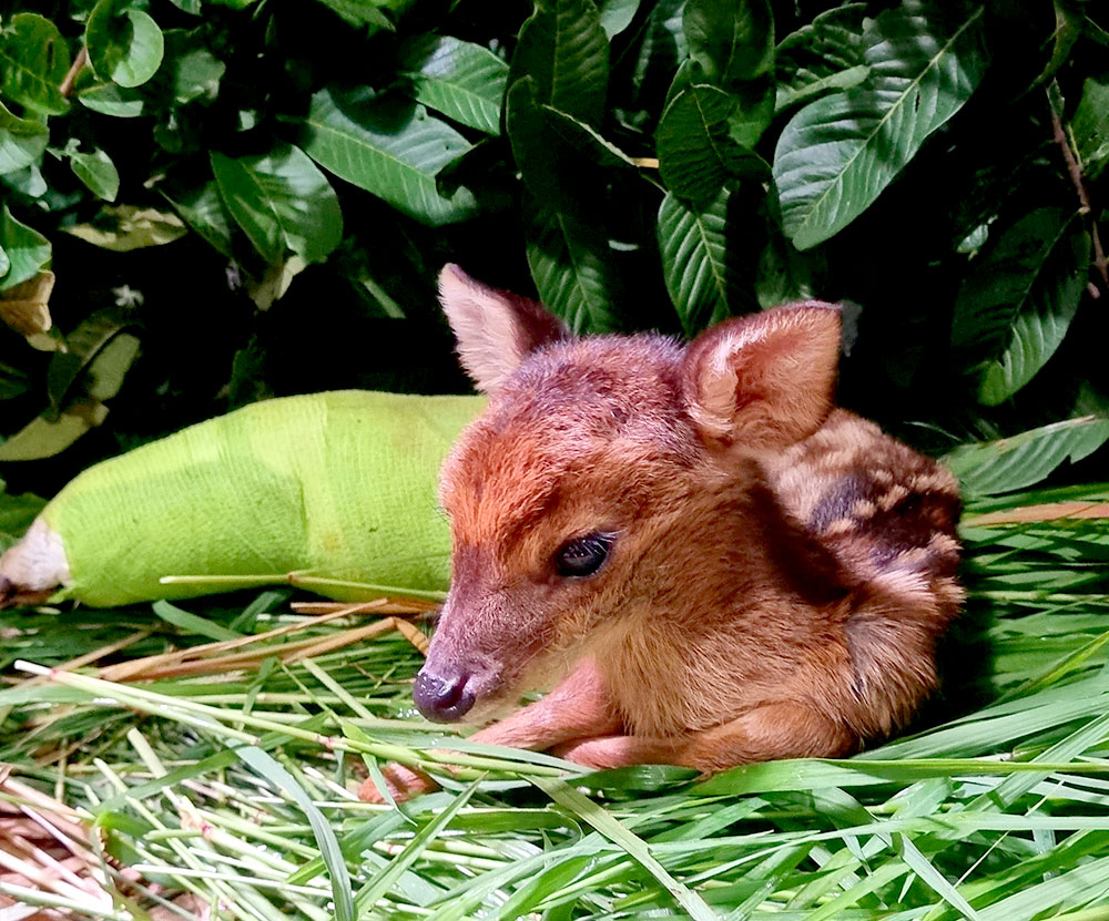La cría de corzuela colorada enana (Mazama americana) encontrada el martes ya está siendo rehabilitada. No obstante, si bien, la pequeña está mostrando avances, los expertos son aún precavidos a la hora de hablar de “recuperación”, ya que por tratarse de una “bebé” de pocas semanas, el riesgo de vida todavía sigue latente.