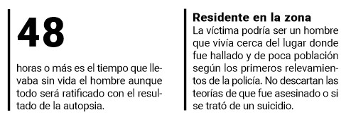 Los uniformados activaron el protocolo y al llegar a las coordenadas indicadas, dieron con un hombre sin vida con marcas en el cuello como si hubiera estado amarrado y colgando por una soga de alguna superficie alta como un árbol.