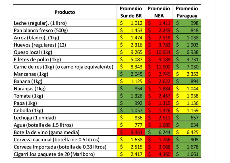 Una comparación regional de precios revela que el Nordeste Argentino (NEA) es la zona más cara para comprar productos esenciales de la canasta alimentaria entre los países del Mercosur. En contraste, los mismos productos cuestan notablemente menos en el sur de Brasil y, especialmente, en Paraguay, donde muchos alimentos llegan a valer la mitad o incluso menos que en supermercados argentinos.