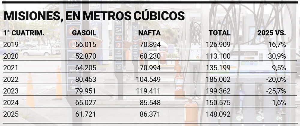 En lo que respecta a abril de 2025 las ventas de combustibles al público en Misiones alcanzaron los 33.283 metros cúbicos, lo que representa una caída del 1,7% interanual en comparación con el mismo mes del año anterior y, según estimaciones preliminares del sector, en mayo la baja sería sensiblemente menor.