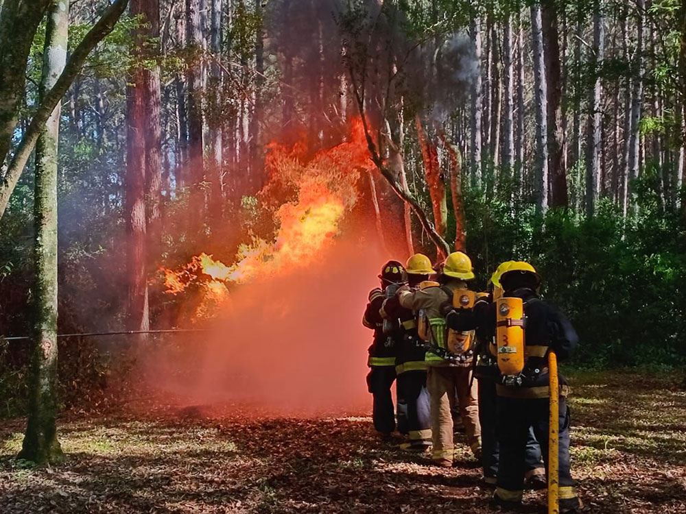 Bomberos voluntarios se entrenan en fuego real