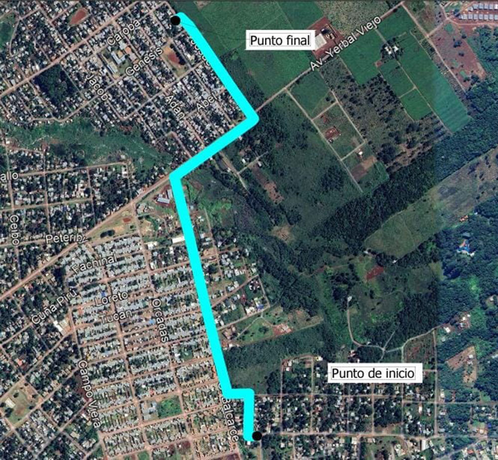 El trazado contempla una tubería de PVC de 160 mm de diámetro a lo largo de 1632 metros lineales, las cuales inician en la intersección de las calles Arroyo Uruguaí, siguiendo su recorrido por calle Pindaiti, Adolfo Bioy Casares, C. Balcarce, Av. Yerbal Viejo para finalizar por calle Josué, y cuenta con la conexión a una cisterna subterránea de hormigón armado.