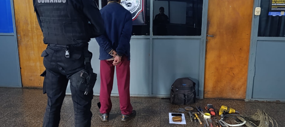 El delincuente fue trasladado a sede policial y quedó a disposición de la Justicia. La rápida respuesta policial, en coordinación con el sistema de videovigilancia, fue clave para evitar que el robo se concretara y recuperar los elementos sustraídos.