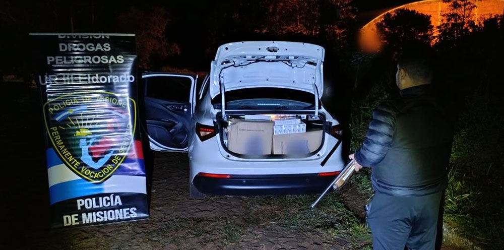 En un operativo realizado durante la madrugada de este domingo en la localidad de Santiago de Líniers, efectivos de la Policía de Misiones secuestraron un automóvil robado en Brasil que transportaba una importante carga de cigarrillos de contrabando. El valor estimado de la mercadería asciende a 42 millones de pesos.