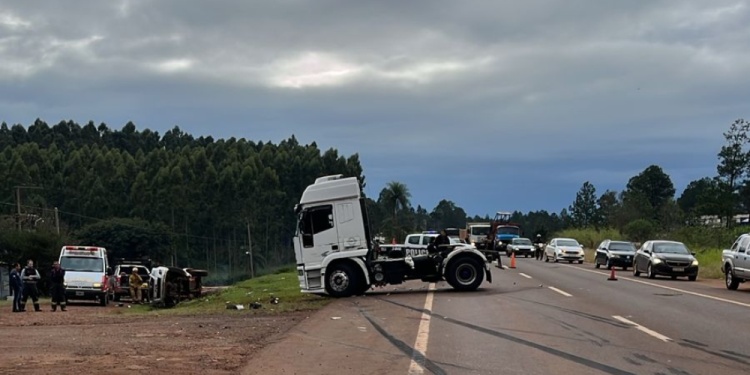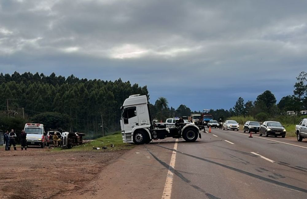 Por causas que se investigan, la camioneta se habría cruzado de carril e impactó contra el rodado mayor, y terminó volcado sobre una de las márgenes de la ruta.