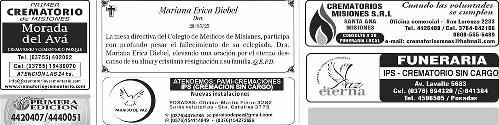 • Fúnebres del Sábado 31 de Mayo de 2025