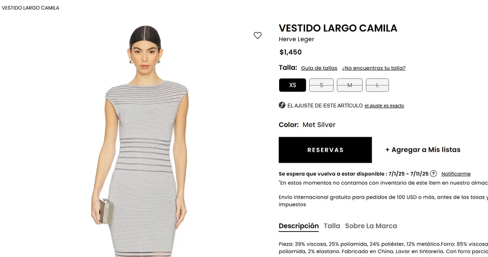 Según trascendió, el vestido de la China se llama “The Camila Gown” y es de la marca francesa Hervé Léger. Su valor es de 1450 dólares, lo que se traduce en 1.716.785 pesos.