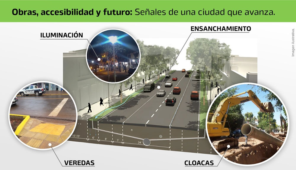 Entre las obras planificadas para la primera etapa se incluyen el ensanchamiento de la arteria, instalación de nuevas redes cloacales, construcción de desagües pluviales, veredas accesibles y un sistema de iluminación LED renovado. Estas mejoras permitirán reorganizar el espacio público, atender demandas históricas y acompañar el crecimiento urbano de manera ordenada y sostenible.