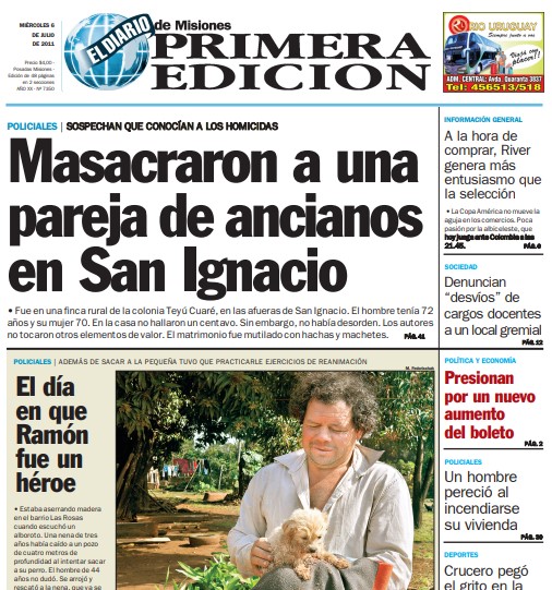El 5 de julio de 2011, el matrimonio integrado por Oralina Sibre (70) y Luis Lecszinksi (72) protagonizaba una de las páginas más dramáticas de la historia policial reciente en Misiones, cuando aparecieron masacrados a golpes y machetazos en su chacra del Teyú Cuaré, en San Ignacio.