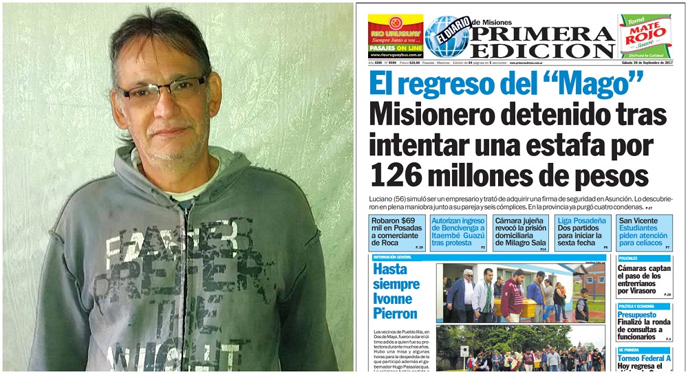 También en exclusiva pero en noviembre de 2012, este Diario presentó parte del historial de “El Mago” Méndez. Una seguidilla que se inició en 2001, cuando el Tribunal Penal 1 de Oberá lo condenó a cinco años y dos meses por catorce hechos de estafa a agricultores.