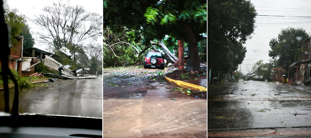 “La tormenta arrancó cerca de las 2.30 de la mañana, y ya a los 15 minutos empezaron a llegar distintos llamados de diferentes partes de la ciudad”, relató Bareiro. Las consecuencias fueron inmediatas: viviendas destechadas, árboles caídos sobre casas y calles bloqueadas.