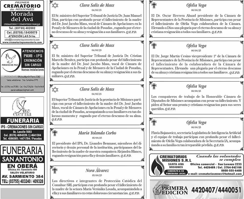 Tags: Fúnebres 07-06-2025