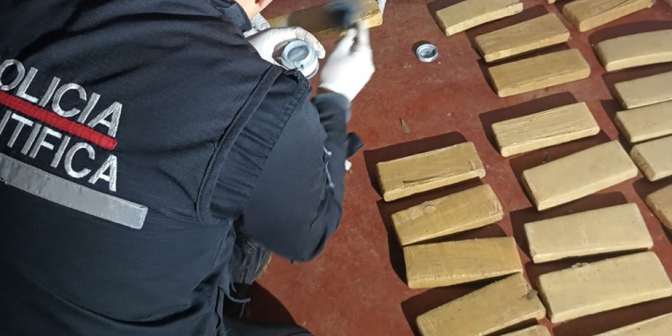 Intervinieron en la escena las divisiones Policía Científica y Drogas Peligrosas, que realizaron el narco test correspondiente, confirmando que se trataba de marihuana prensada, con un peso total de 75,607 kilogramos.