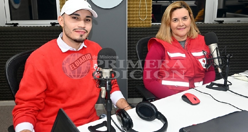 Araceli Villagra, la presidenta de la Cruz Roja filial Posadas, junto al vicepresidente Anton Cybek visitaron los estudios de FM de las Misiones para contar las distintas actividades que realiza esta loable institución de renombre mundial