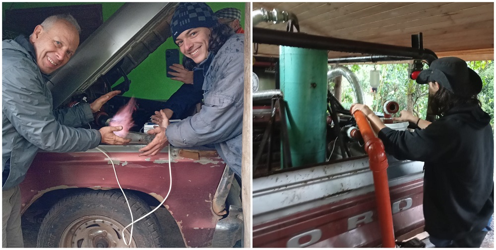 El combustible que utiliza la camioneta es la carbonilla, un residuo de la producción de carbón vegetal muy abundante en Cerro Corá. “No puede ser cualquier materia orgánica seca, porque tenés que carbonizarla para que funcione bien”, aclaró Camilo.