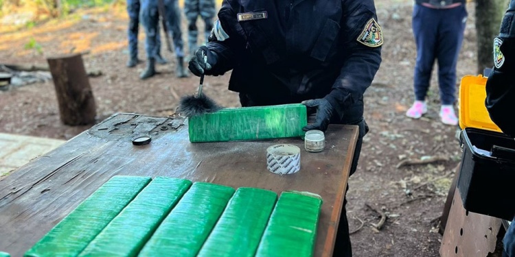 La orden de allanamiento partió del Juzgado de Instrucción Nº 5 de Alem, en el marco de una investigación por una red de robos de motocicletas y comercialización de motopartes robadas. La pesquisa condujo a ese domicilio, donde, además de material vinculado a las motos, los agentes hallaron cuatro bultos con 57 ladrillos prensados de color verde amarronado.