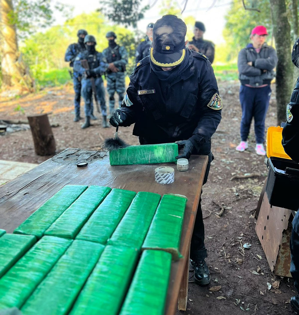 La orden de allanamiento partió del Juzgado de Instrucción Nº 5 de Alem, en el marco de una investigación por una red de robos de motocicletas y comercialización de motopartes robadas. La pesquisa condujo a ese domicilio, donde, además de material vinculado a las motos, los agentes hallaron cuatro bultos con 57 ladrillos prensados de color verde amarronado.