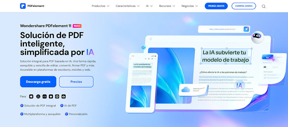 Desarrollado por Wondershare, este software no solo iguala las funcionalidades de competidores premium como Adobe Acrobat, sino que también ofrece ventajas exclusivas en relación costo-beneficio, integración con IA y multiplataforma.