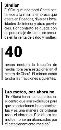El funcionario dijo con relación al horario en que estará vigente el SEM en Oberá que “después de varias reuniones con la Cámara Empresarial, se estableció que será de 7 a 17, de corrido. Y el costo será de 40 pesos cada media hora”.