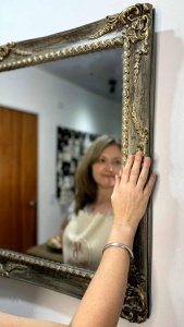 El marco de espejo fue un punto de inspiración, y le pedimos un mensaje a emprendedoras como ella: “Cuando te vas encontrando con piedras en el camino es fácil desistir de la idea, pero al final confiar es lo que te permite seguir hacia adelante. “Aprender permanentemente, de nuestra propia experiencia y de lo que otros profesionales nos puedan enseñar.