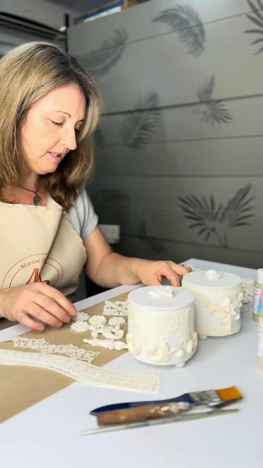 Entonces estudió pintura decorativa, eran tiempos en los que acá todavía no estaba tan desarrollada entonces comenzó a dar talleres con una compañera y una cosa llevó a la otra porque había que darle toques especiales a los trabajos y entonces, luego de varios años de prueba y error logró crear los moldes para lo que hoy son su principal fuente de ingreso.
