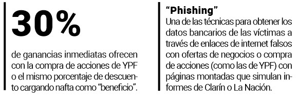 Una de las variantes del phishing consiste en que el jubilado crea que accedió a una plataforma virtual en la que le aparece la evolución de su inversión. Ganancias del 30% en acciones de YPF, por ejemplo, o descuentos del mismo monto si desea cargar combustible en cualquier punto del país.