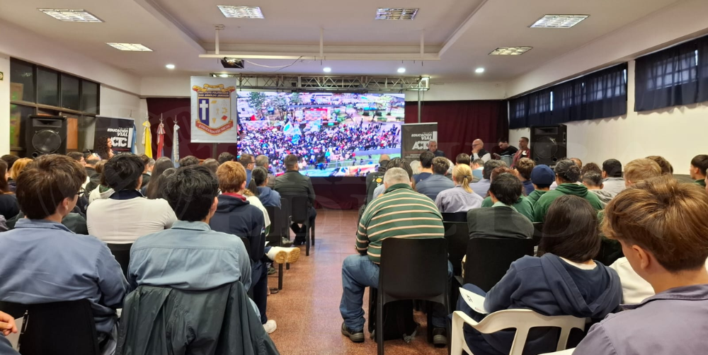 “Es una jornada de seguridad vial organizada por la ACTC para los chicos de quinto año, ya que muchos de ellos están en edad de sacar el carnet de conducir”, explicó Jorge Pedrasini, docente del establecimiento. “La idea es que tomen conciencia de lo que implica la seguridad vial. Tuvieron una charla y ahora por la tarde continúa la parte práctica, con simuladores de manejo, la participación de la Policía Vial y otras actividades que refuerzan esta concientización”, agregó.
