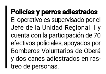 Desde la Unidad Regional II, con asiento en Oberá, informaron que si bien no hay pistas sólidas o concretas, confían en obtener alguna novedad en las próximas horas, teniendo en cuenta el enorme despliegue del dispositivo de búsqueda que incluye rastrillajes por zonas urbanas, suburbanas y áreas rurales, especialmente en sectores cercanos a su vivienda.