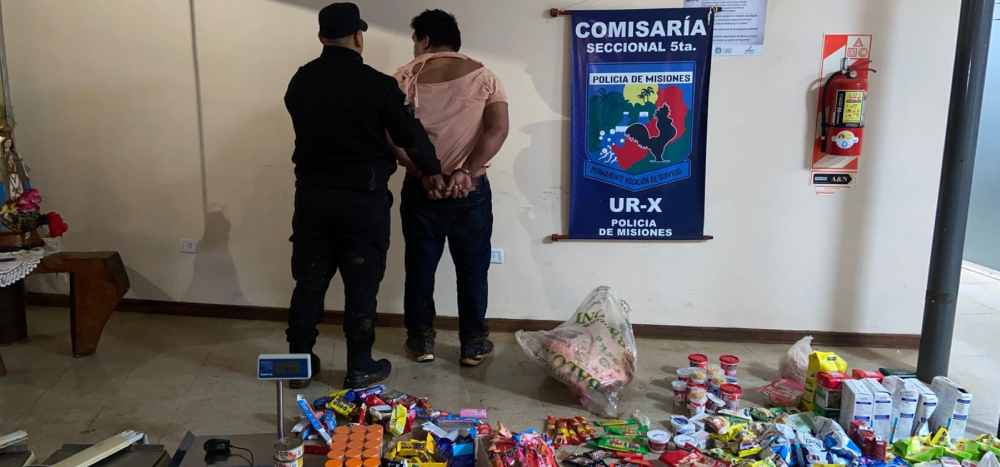 El negocio que fue prácticamente desvalijado está situado en el barrio Don Santiago. Por esa zona y en el marco de las actividades de prevención realizadas durante la madrugada de ayer, efectivos de la comisaría Quinta de Posadas detuvieron a un hombre de 37 años y le secuestraron la pata de carne vacuna, junto con balanzas digitales y varios alimentos embolsados, entre ellos seis bidones de aceite, un pack de frascos de café, fiambres, gruesas de cigarrillos y gran variedad de comestibles por casi 350 mil pesos.