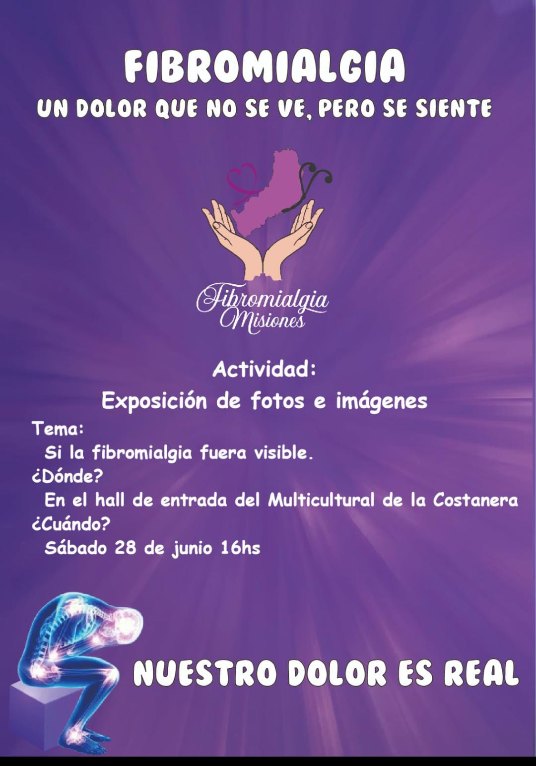 Este sábado 28 de junio, desde las 16 horas, se inaugurará en el Espacio Multicultural de la Costanera de Posadas una exposición fotográfica impulsada por el grupo Fibromialgia Misiones, con el objetivo de hacer visible una enfermedad que, aunque profundamente incapacitante, muchas veces pasa inadvertida, como lo es la fibromialgia.