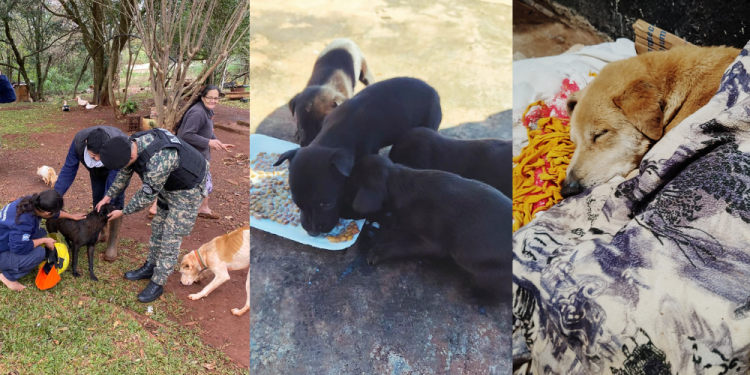 El primer rescate se produjo en la ciudad de Oberá, cuando una vecina de calle Malvinas alertó sobre la presencia de varios cachorros abandonados en una zona de malezas cercana a su domicilio. Una patrulla de la División Comando acudió al lugar y halló a cuatro perritos, que fueron alimentados en el sitio y luego trasladados para recibir atención veterinaria.