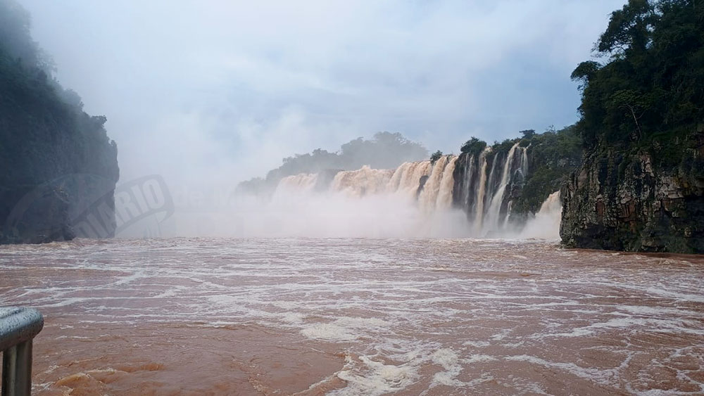 Durante la víspera continuó creciendo el nivel del río Iguazú, como consecuencia de las lluvias caídas en territorio brasileño, algo que viene sucediendo desde el inicio de la semana y las Cataratas del Iguazú continúan con un enorme caudal, con casi tres veces más de volumen de agua que los 1.500 metros cúbicos por segundo considerados normal.